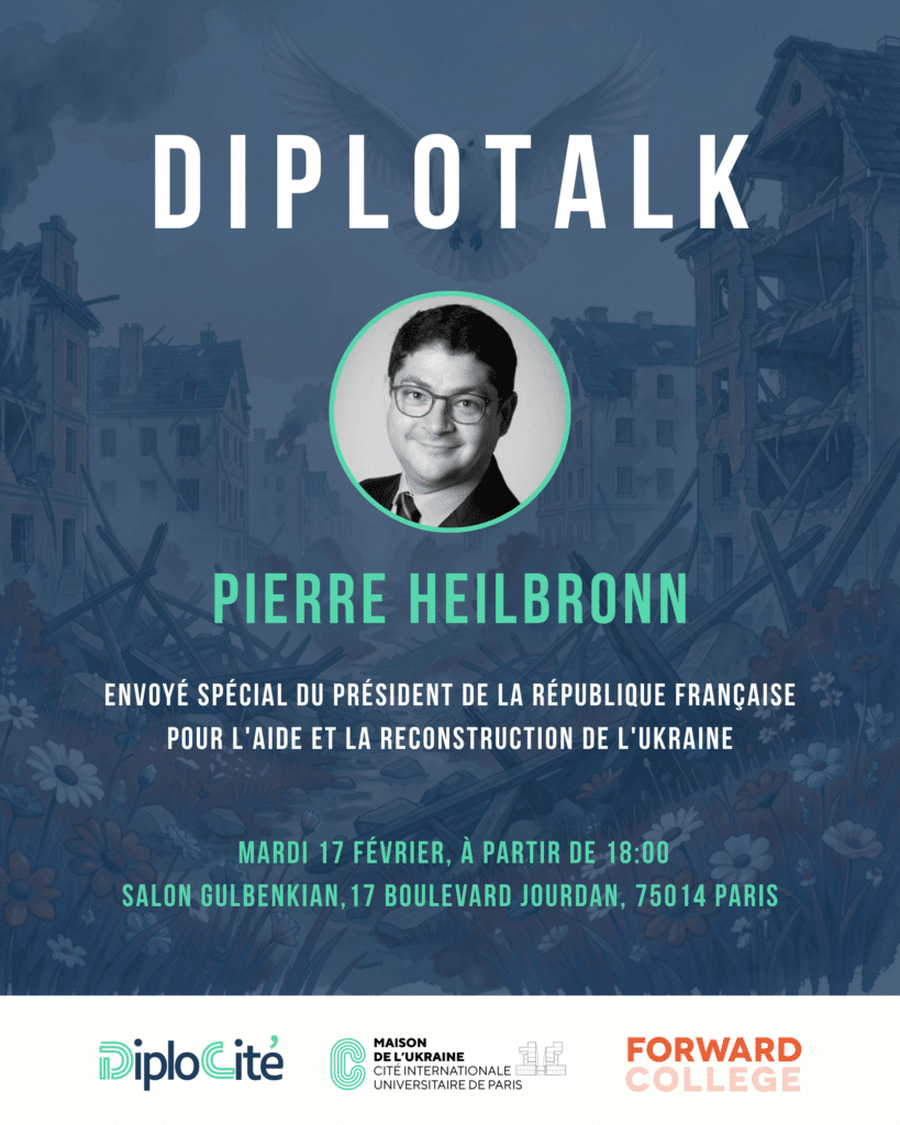 DiploCité, la Maison de l’Ukraine et Forward College vous invitent à la première édition de la série DiploTalk avec Pierre Heilbronn, envoyé spécial du Président de la République française pour l’aide et la reconstruction de l’Ukraine jusqu’en décembre 2025.