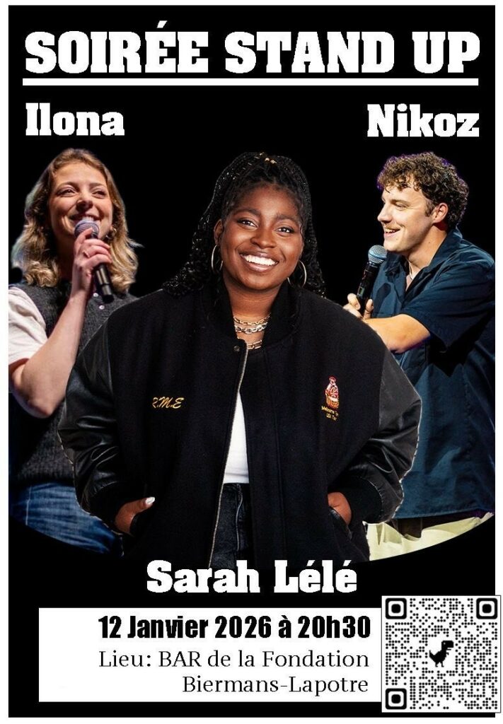 Sarah Lélé, Ilona et Nikoz montent sur scène pour 20 minutes chacun de stand-up. Trois voix, trois univers, une même énergie bruxelloise.