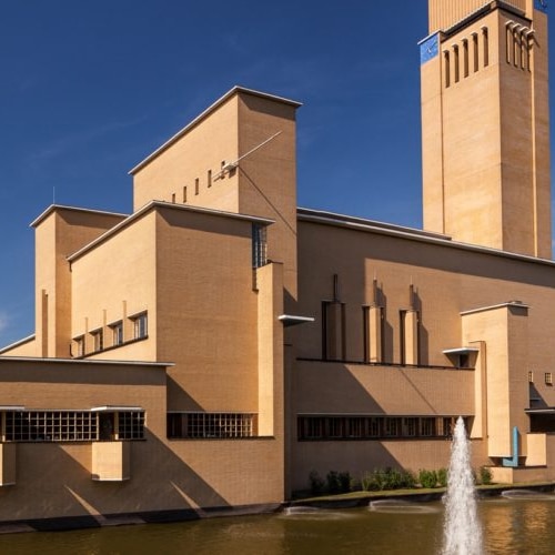 Après sa prise de fonctions en 1915 comme directeur des travaux publics de la municipalité d’Hilversum, Dudok entreprit presque immédiatement de concevoir un nouvel hôtel de ville. Cependant, la construction du projet définitif ne débuta qu’en 1928 (après dix projets pour différents emplacements). Grâce à son emplacement sur un terrain dégagé, sans contraintes de construction ni de hauteur, Dudok bénéficia d’une totale liberté créative. Il en résulta un édifice sculptural aux volumes cubistes et aux lignes horizontales, surmonté d’une tour de 48 mètres de haut. Visionnez une vidéo sur l’inauguration de l’hôtel de ville en 1931, en présence notamment du commissaire de la Reine, Jhr. Roell, du ministre de la Gestion de l’eau, PJ Reymer, et du maire Lambooy.